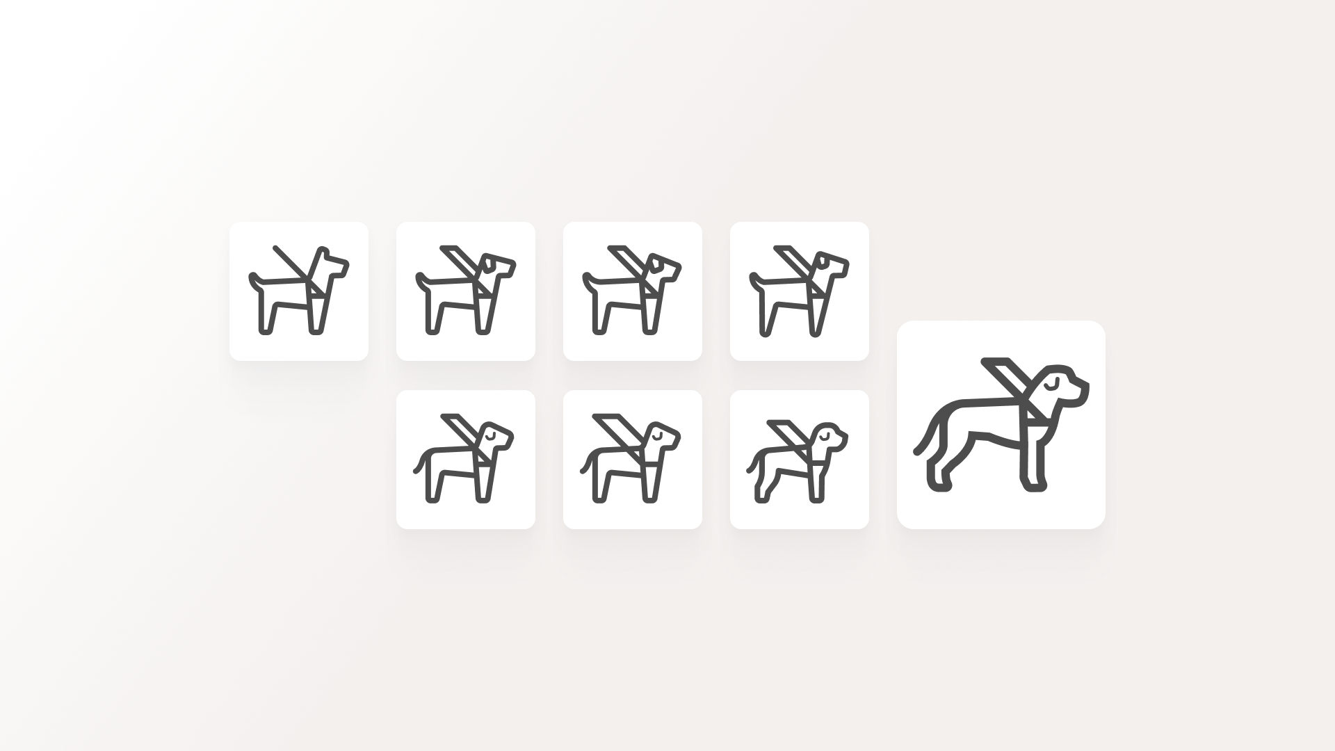 Each icon was carefully redrawn to strike a balance between clarity and visual harmony — whether it was a minimalist form like the Braille symbol or a more illustrative one like the ASL hand or guide dog. Despite their range in visual complexity, all icons were designed to feel like part of the same cohesive family.