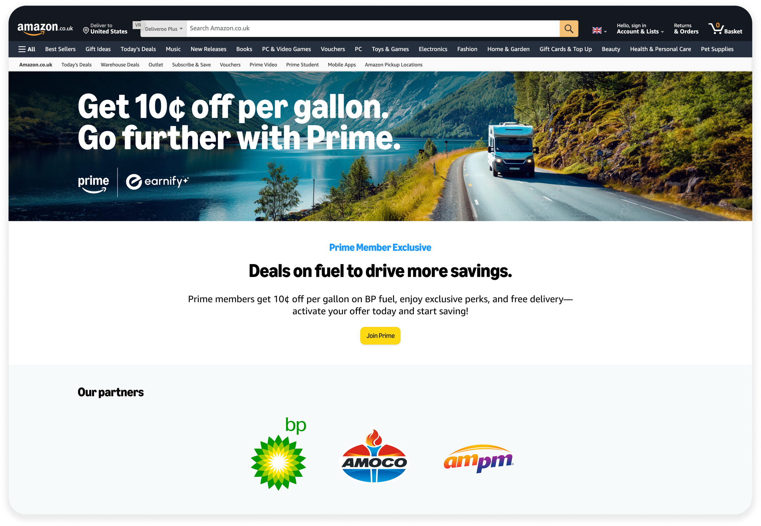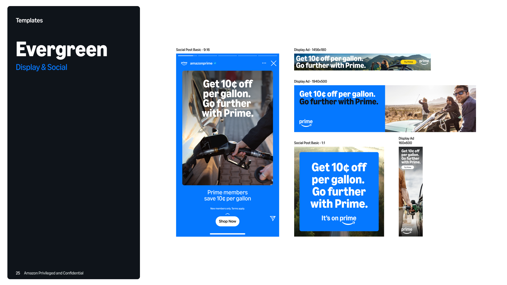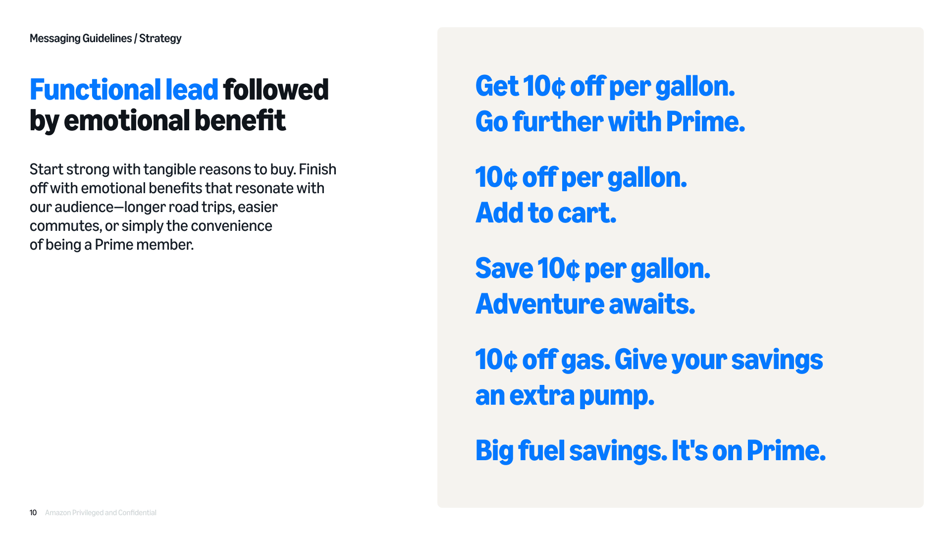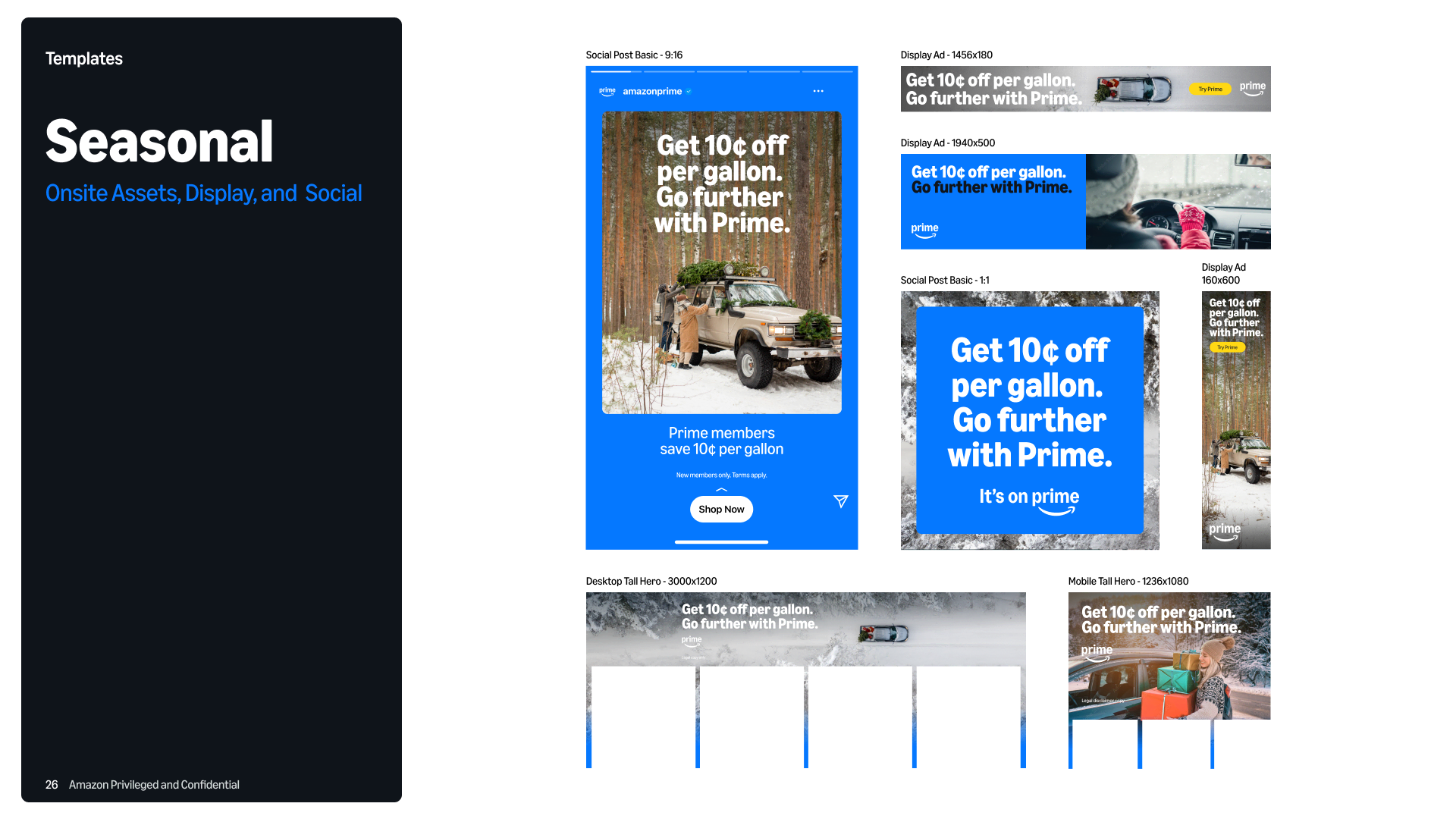 Unlike most Prime benefits that live in the digital space (like streaming or free delivery), Prime Fuel introduced a physical-world perk: saving money at the gas station. Visually and conceptually, this required a fresh approach — something distinct enough to stand out, but still recognizably “Prime.”