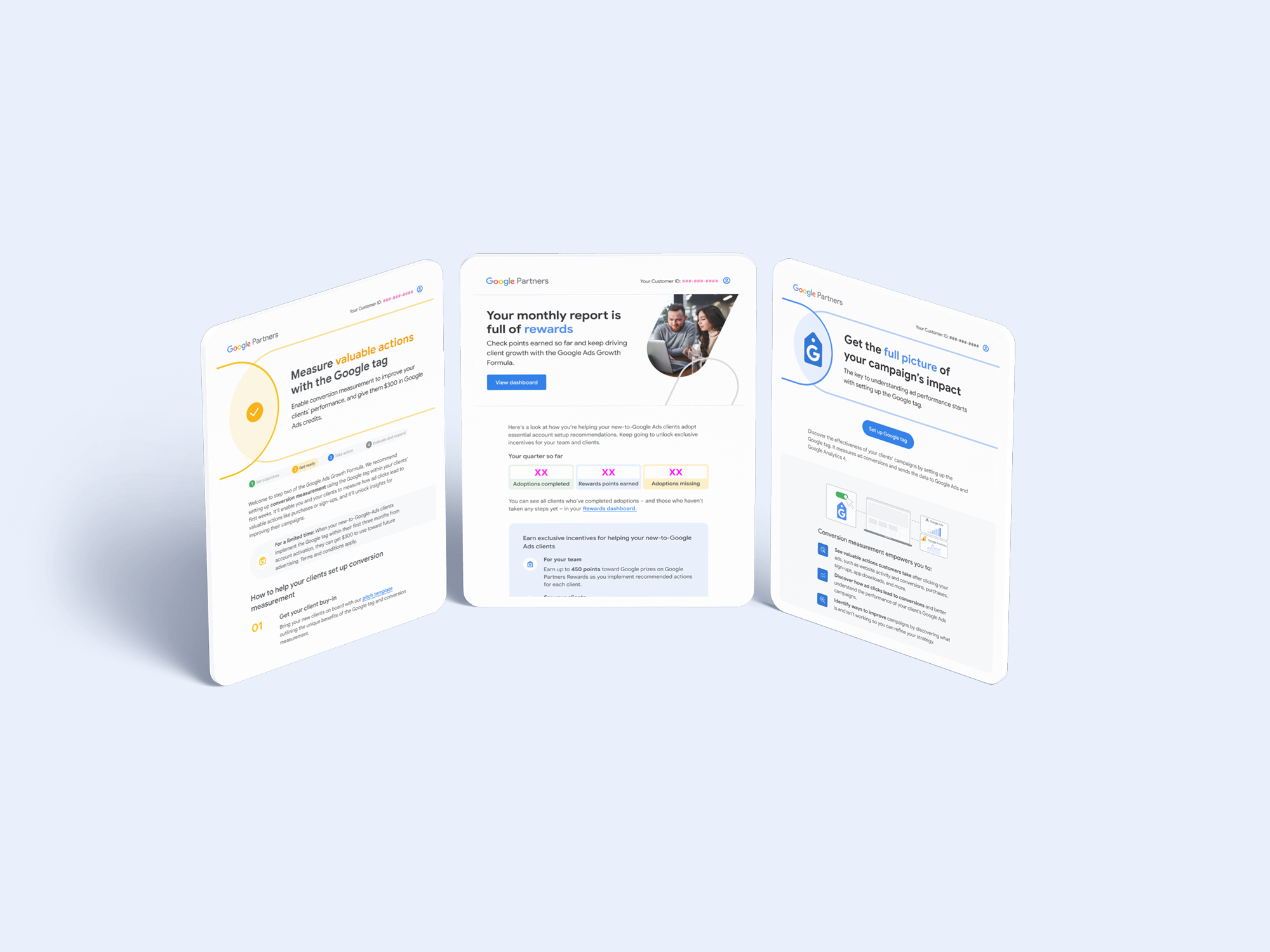 In parallel, we were responsible for maintaining and evolving the brand identity for Google Partners & Rewards — ensuring it remained distinct yet cohesive within the broader Google Ads ecosystem.